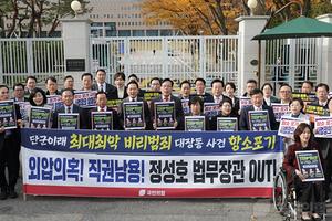 11ÀÏ ¿ÀÈÄ À嵿Çõ ´ç ´ëÇ¥¿Í ¼Û¾ð¼® ¿ø³»´ëÇ¥´Â ´ç ±¹È¸ÀÇ¿øµé°ú ÇÔ²² °æ±âµµ °úõ½Ã¿¡ À§Ä¡ÇÑ ¹ý¹«ºÎ ¾Õ¿¡¼ ´ëÀ嵿 »ç°ÇÀ» Ç×¼Ò Æ÷±âÇÏ´Â...