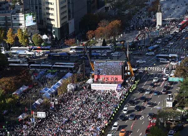 11ÀÏ ¿ÀÈÄ ¼¿ï ¼¼Á¾´ë·Î¿¡¼ ÀÚÀ¯ÅëÀÏ´ç ÁÖÃÖ·Î ÁÖ»çÆÄ ô°á ±¹¹Î´ëȸ°¡ ¿¸®°í ÀÖ´Ù. À̳¯ Çѱ¹³ëÃÑÀº ¿©ÀÇ´ë·Î¿¡¼, ¹ÎÁÖ³ëÃÑÀº ¼´ë¹® ÅëÀϷο¡¼ Áýȸ¸¦ ¿©´Â µî ´ë±Ô¸ð Áýȸ·Î ÀÎÇØ ¼¿ï °÷°÷¿¡¼ ±³ÅëÈ¥ÀâÀÌ ¹ß»ýÇß´Ù. 2023.11.11.