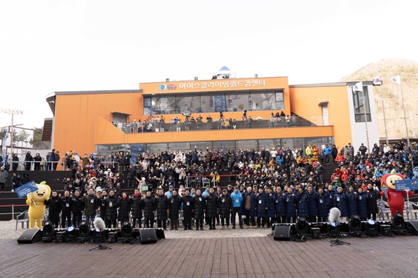 | 2026 UIAA 청송 아이스클라이밍 월드컵 개회식 단체사진. Á¦°ø= ´ëÇÑ»ê¾Ç¿¬¸Í