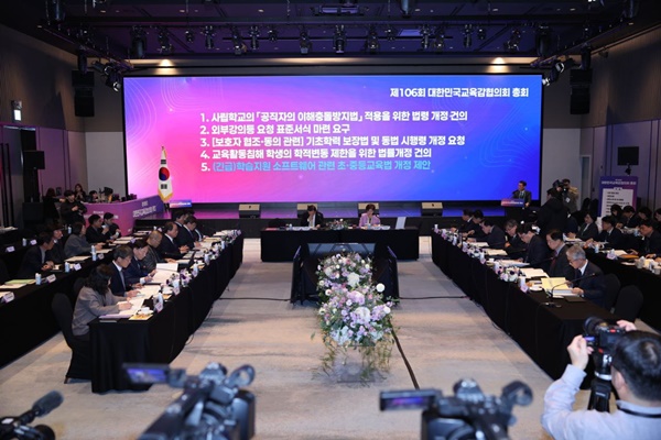 ÀÓÅÂÈñ ±³À°°¨Àº “ÇàÁ¤ÅëÇÕ ³íÀÇ, ±³À°ÀçÁ¤ ¿©°Ç, ±³¿ø Á¤¿ø ¹®Á¦ µî ±³À°À» µÑ·¯½Ñ ȯ°æÀº ±× ¾î´À ¶§º¸´Ù ¾öÁßÇÑ »óȲ”À̶ó¸é¼ “À̹ø ÃÑȸ°¡ ±³À°ÀÇ º»Áú ȸº¹°ú ±³À°ÀÚÄ¡ °È¸¦ ÇâÇÑ ±³À°°³Çõ ¹æÇâÀ» ÇÔ²² °í¹ÎÇÏ°í ³íÀÇÇÏ´Â ÀÚ¸®°¡ µÇ±â¸¦ ¹Ù¶õ´Ù”°í ¸»Çß´Ù.
