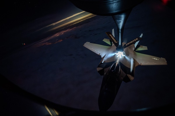 27ÀÏ ¹Ì±º Áߺλç·ÉºÎ´Â ¹Ì °ø±º F-15E°¡ ¿¡ÇÈ Ç»¸® ÀÛÀü Áß Áßµ¿ ±âÁö¿¡¼ ÀüÅõºñÇàÀ» À§ÇØ ÀÌ·úÇÏ´Â ¸ð½À°ú ¹Ì °ø±º F-35 ¶óÀÌÆ®´× II°¡24ÀÏ ¿¡ÇÈ Ç»¸® ÀÛÀü Áß ÀüÅõ ÀÓ¹« ºñÇà Áß °øÁß ±ÞÀ¯¸¦ ¹Þ°í ÀÖ´Â ¸ð½ÀÀ» °ø°³Çß´Ù. (±Çµµ¿¬ Ǫ¸¥Çѱ¹´åÄÄ ±âÀÚ)