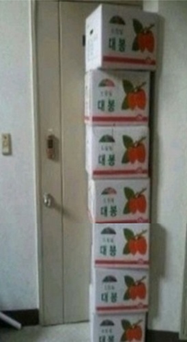 °ø°³µÈ »çÁø¿¡´Â ¾ÆÆÄÆ® Çö°ü¹® ¾Õ¿¡ ³ô°Ô ½×¿©ÀÖ´Â °úÀϹڽºµéÀÇ ¸ð½ÀÀÌ ´ã°Ü ÀÖ´Ù.